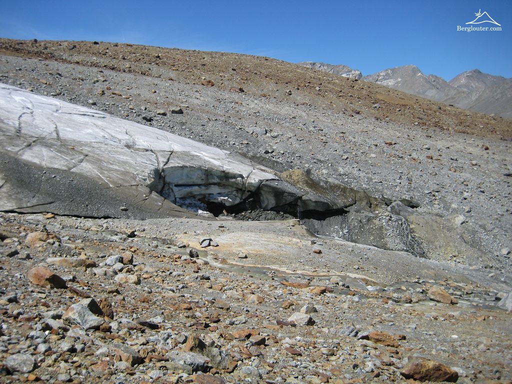 Von der Zufallhütte südwestlich führt der Weg Nr.150 nun problemlos über eine Felsstufe hinauf, wo wir einen tollen Talblick mit der Zufallhütte haben. Kurz danach eröffnet sich uns der faszinierende Blick zur Marteller Gletscherwelt, wo uns die formschöne, weißleuchtende Gestalt der Zufallspitze mit ihren steilen Flanken und weiten Gletschern einlädt. Bald erreichen wir das flache Talstück mit der Steinmauer - "Bau" genannt - ein Schutzwall, der 1891 errichtet wurde, um das Tal von Überschwemmungen und Flutwellen zu schützen. Wir folgen dem Weg Nr.150 über den Langerferner, Richtung  Casati Hütte. Am Ende des Wanderweges  Nr. 150 auf ca. 2.850m über steiles Geröll hoch in Richtung Eisseepass. Unterhalb des Eisseepasses seilen wir uns an und über den spaltenreichen Langerferner weiter bis zur bereits sichtbaren Casati Hütte.